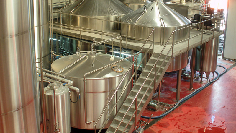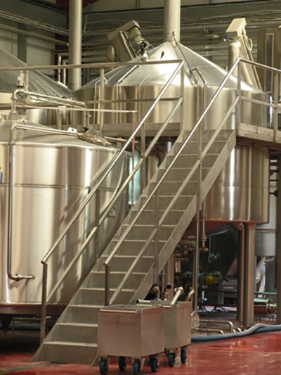 | System structure | Mixing container – Filtering container – Standby filtering container – Brewing container – Spinning container – Access platform with workbench and ladder – Malt must pump, wort pump, transfer pump – Single phase wort cooling exchanger – Piping networks and valves – Hot liquor tank – Cold water tank | ||||