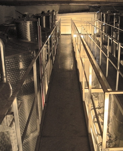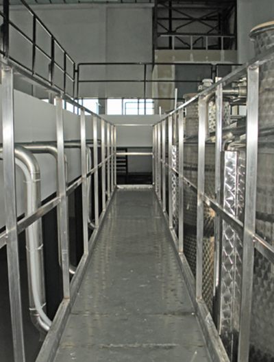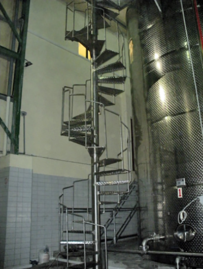 To assist the works being performed on the tops of the tanks, a variety of platforms and access ladders is offered following a study concerning the form, the dimensions and the design. They are usually made of stainless steel, with non-slip stepping areas and strong railings with safety specifications for the protection of the workers. The ladders may be the classic straight type, circular or vertical with a safety cage.